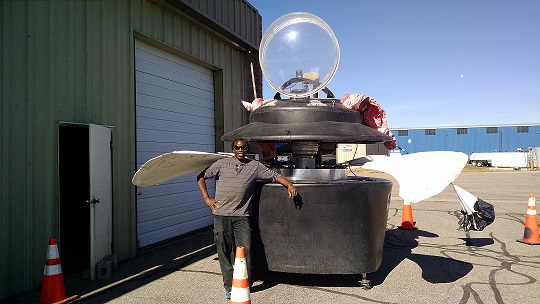 Dr. Haynes shows off his Mars Lander's (Haynes Saucers USO UFO) lower, and mid deck external heat-shield skin, in preparation for the upcoming FTG demonstration flight.
